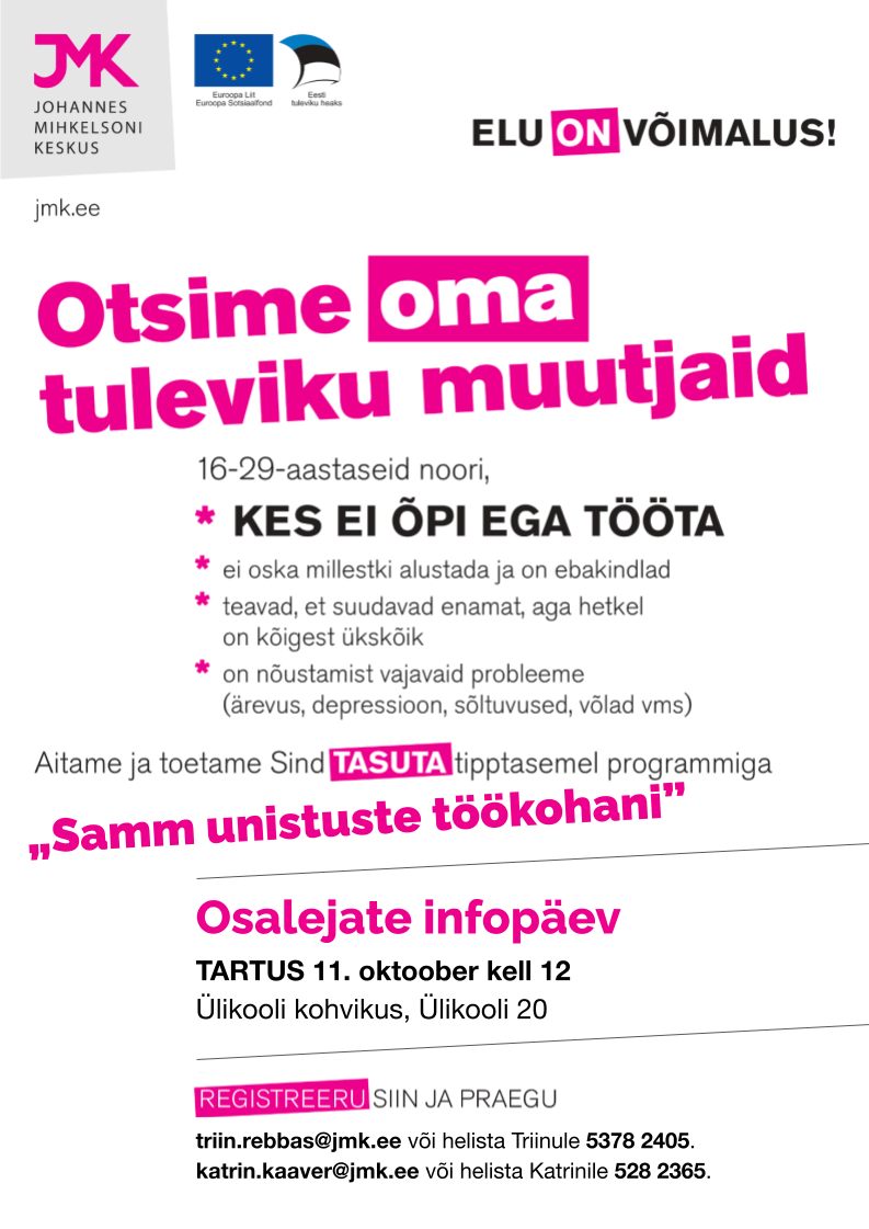 Tartus algab 11. oktoobril 16-29 aastastele noortele suunatud koolitus “Samm unistuste töökohani”