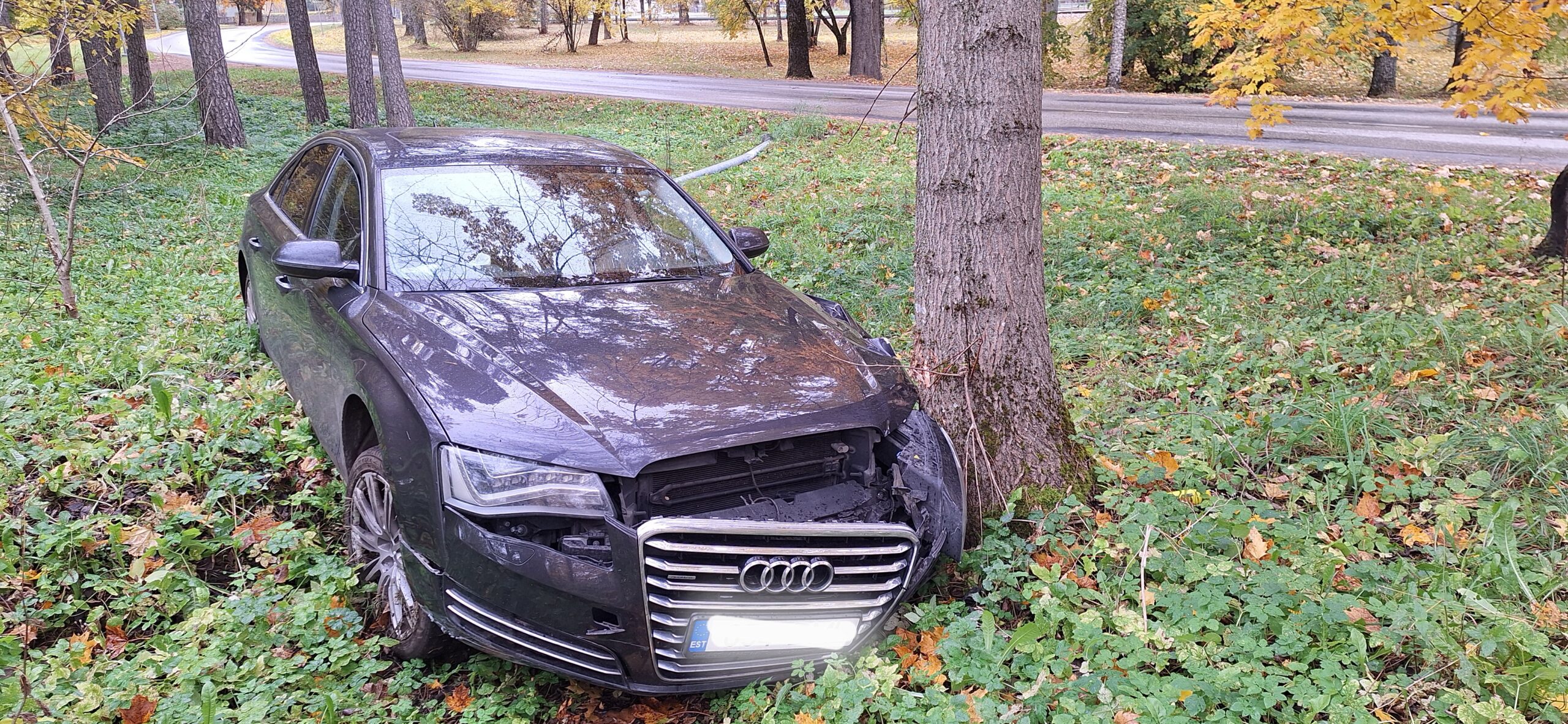Täna, 13. oktoobri ennelõunal kella 10 ja 12 vahel juhtus Elvas Pargi tänaval liiklusõnnetus, milles Elva Raudteejaama poolt mööda Pargi tänavat Kärneri tänava poole liikunud Audi A8 juht kaldus oma sõidukiga paremale poole teepeenart, mille järel auto viskus üle tee vaskalule (ilmselt pargi servas teepeenra ääres asuva betoontrepilt saadud löögi tagajärjel), niitis seejärel maha metallist tänavalaterna posti vastassuuna vööndis ja jäi pidama põrkudes vastu pargi alust puud. Visuaalsel vaatlusel võis olla auto kiirus suurem lubatust, (sellel lõigul 50km/h), kuna algsed pidurdusjäljed teepeenral olid vähemalt paarkümmend meetrit pikad.