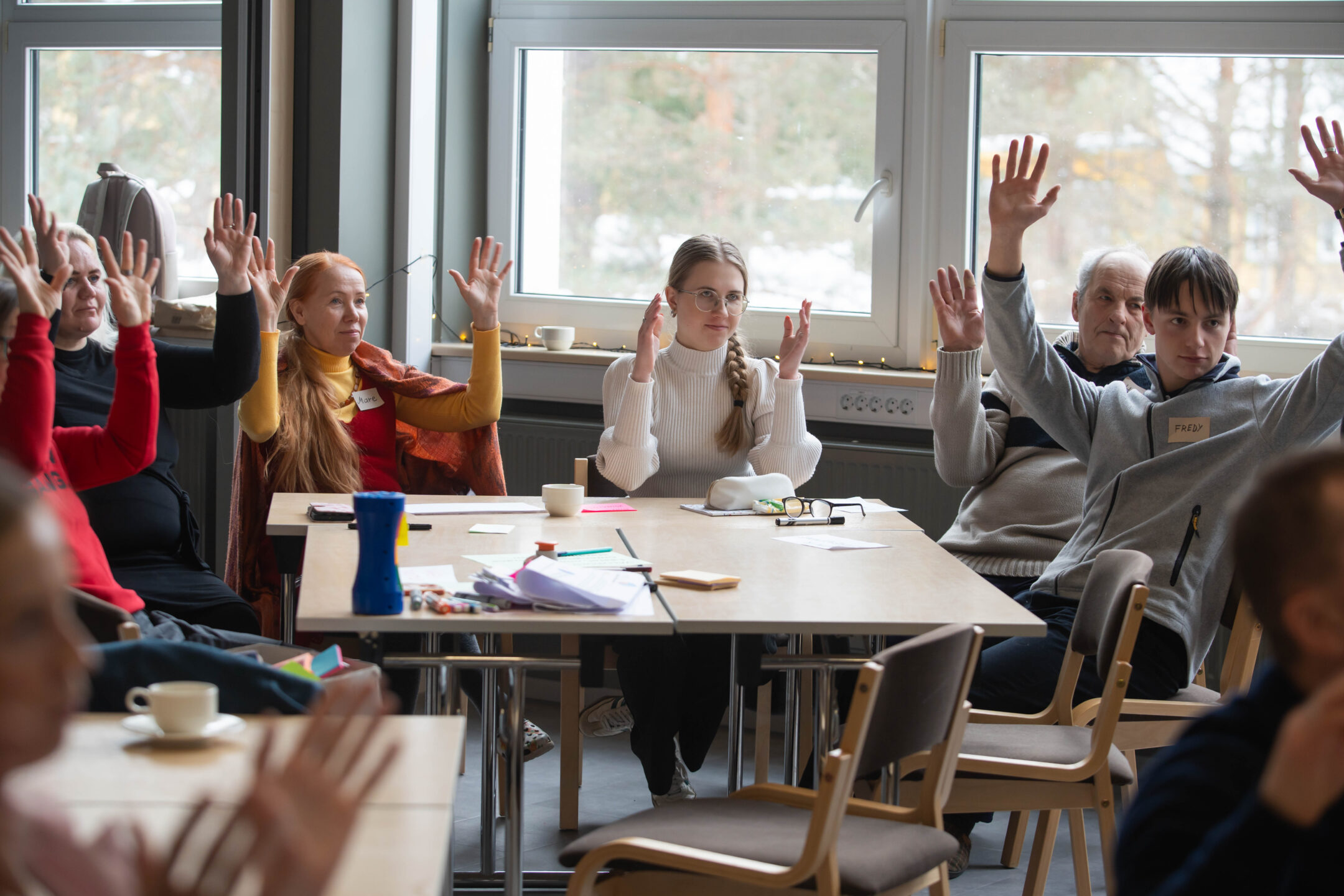 Hea elu rahvakohtumine, ühispilt Elva Gümnaasiumi fuajees 15.02.2026, foto: Maksim Shmeljov